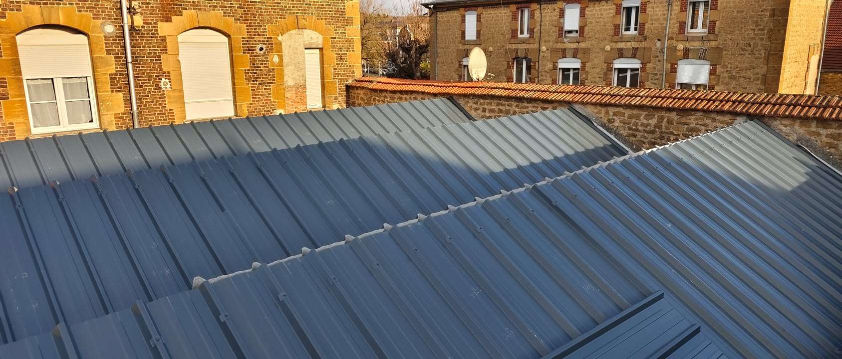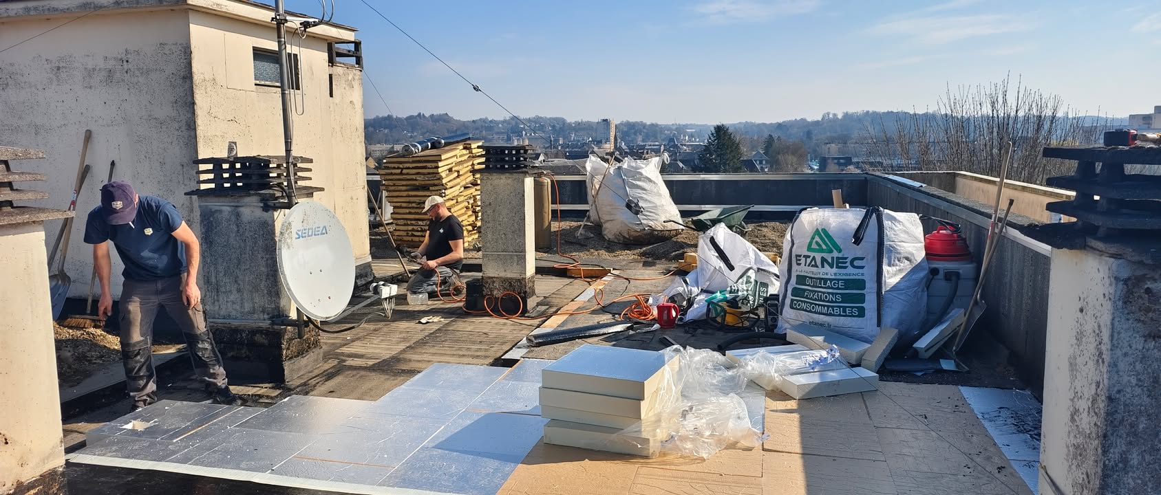 🏗️ Chantier de rénovation d’une toiture plate – un projet technique mené avec succès ! Nos équipes sont récemment intervenues sur un chantier de rénovation complète d’une toiture plate sur dalle béton, situé à près de 18 mètres de hauteur… avec une vue imprenable sur le stade Louis Dugauguez de Sedan ⚽ Au programme : - Enlèvement de toute la mousse présente dans les gravillons - Dépose du complexe d’étanchéité existant - Mise en œuvre d’une nouvelle isolation en mousse polyuréthane - Réalisation d’une étanchéité bicouche SOPREMA - Repose des gravillons pour une finition durable Un chantier exigeant, tant par sa technicité que par ses conditions d’accès, mais relevé avec professionnalisme et rigueur par nos équipes 💪 👏 Félicitations à tous pour ce travail de qualité ! 🙏 Un grand merci également à notre client pour sa confiance Vous avez un projet en couverture, étanchéité ou bardage ? N’hésitez pas à nous contacter, nous serons ravis de vous accompagner ! 03.24.52.13.12 / contact@petitmangin.fr #Toiture #Étanchéité #Rénovation #SOPREMA #Travaux #BTP #Fierté #sedan